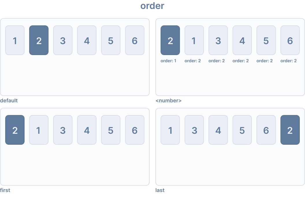 The order CSS property sets the order to lay out an item in a flex or grid container. Items in a container are sorted by ascending order